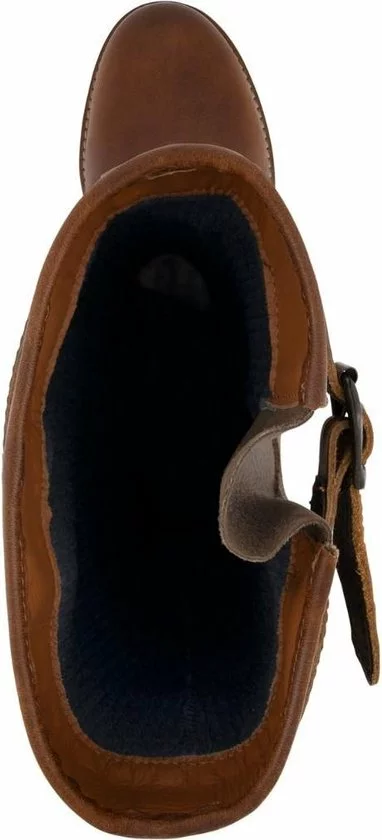 Het verstelbare riempje op de kuit geeft deze pull on boot een stoer uiterlijk.