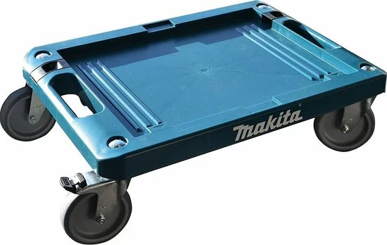 Makita Trolley geschikt voor alle Mboxen van Makita – P-83886 * Mbox is met kliksysteem te bevestigen aan de trolley. * Voorzien van twee handgrepen en vier zwenkwielen, waarvan 2 met voetrem. * Max. draagvermogen: 100 kg