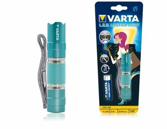 Lippenstift-vormige zaklamp met een 0,5 Watt High-Power LED en elegant ontwerp, spatwaterdicht en past zelfs in de kleinste handtas. Verkrijgbaar in twee modieuze kleuren.