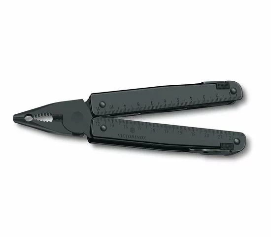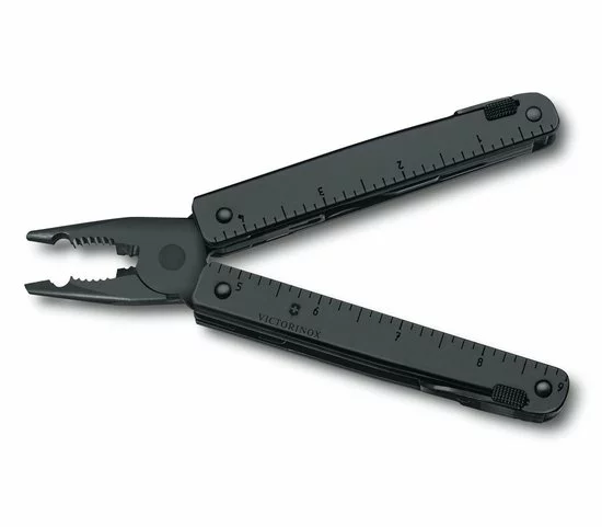 SwissTools zitten vol extremen. Ze zijn extreem handig, extreem functioneel, en extreem compact. Ze zijn als een hele gereedschapskist, verpakt in een enkele geavanceerde multitool. En nu zijn er deze eveneens elegante varianten van diepzwart gepolijst staal. De zwarte afwerking zorgt voor een betere bescherming tegen corrosie en kan residu op de handen achterlaten bij het eerste gebruik. Je zult eindeloze toepassingen ontdekkenvoor dit werkpaard in huis, op het werk of in het spel. De bijbehorende riemetuis zien er niet alleen goed uit maar zijn ook perfect op maat om de tools in op te bergen.